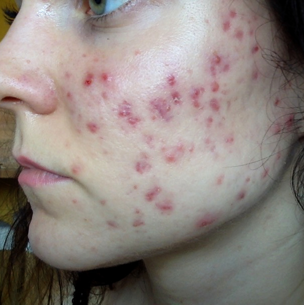 To zdjęcie też jest archiwalne, ale pokazuje stan mojej skóry po chyba najcięższym okresie batalii. Ciężkie trądziki niestety zostawiają blizny.